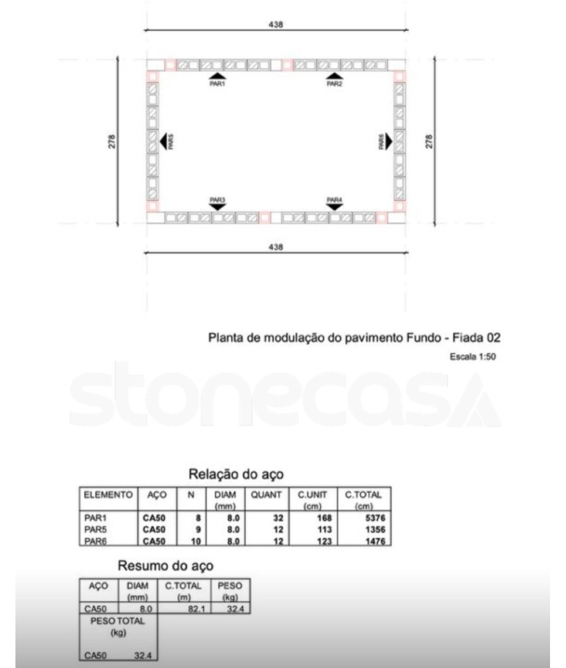 Vamos utilizar um exemplo de projeto com as seguintes dimensões.