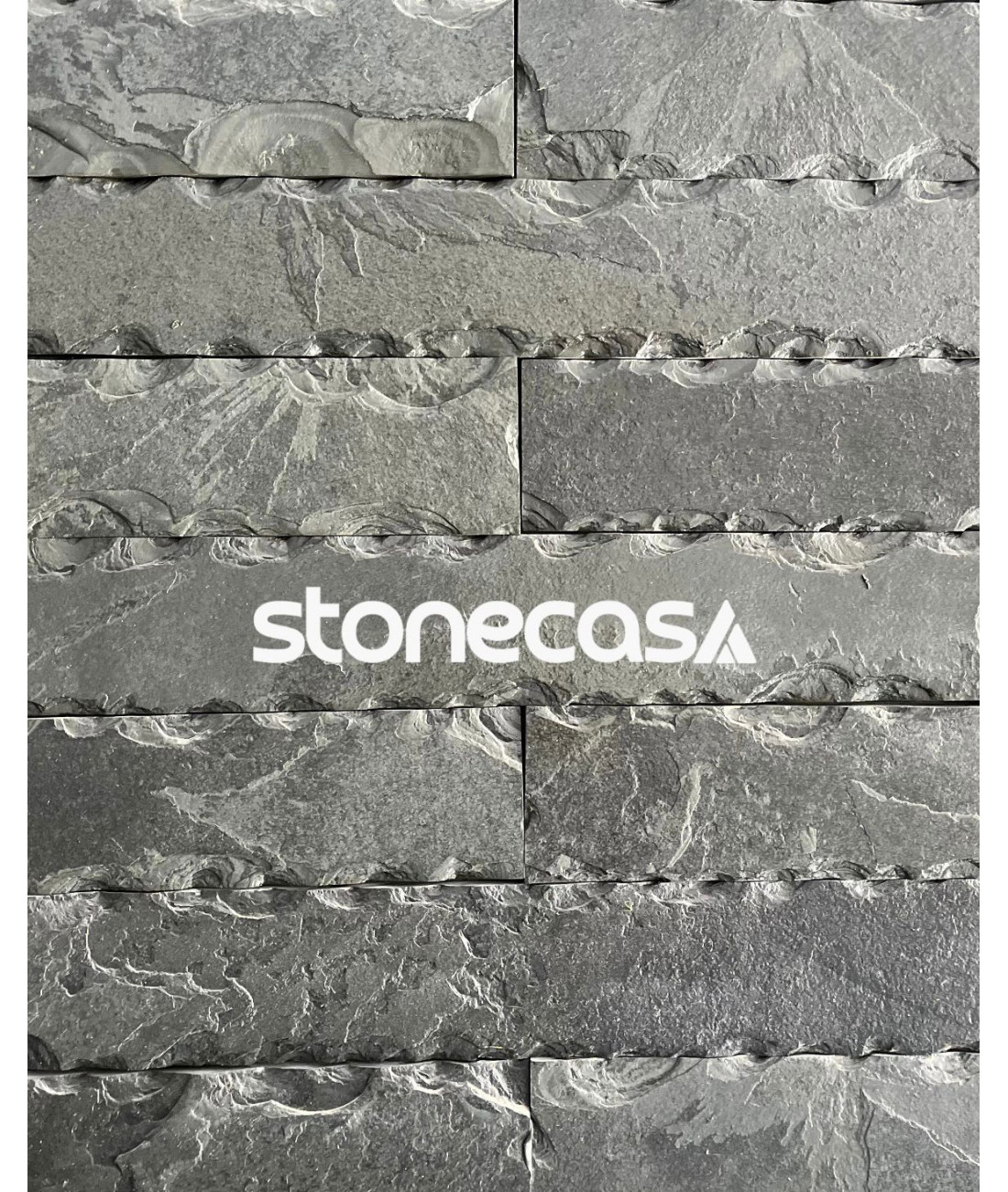 Peças de Mosaicos e filetes ardósia negra com design inspirado nas ondas do mar, disponíveis tanto em placas de 30x30 cm como em peças soltas. Este modelo traz um toque de serenidade e naturalidade, perfeito para projetos que desejam incorporar a beleza dos elementos naturais. Filetes de Ardósia Preta