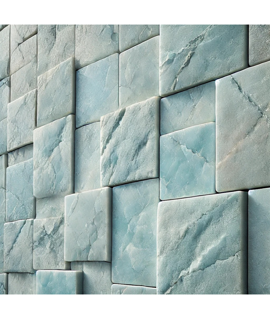 - Cor e Estética: A pedra possui uma coloração azul-clara suave, com tonalidades variando entre cinza e verde-azulado, dependendo da iluminação e do ambiente. Essa paleta de cores traz uma sensação de calma e frescor, perfeita para ambientes contemporâneos.