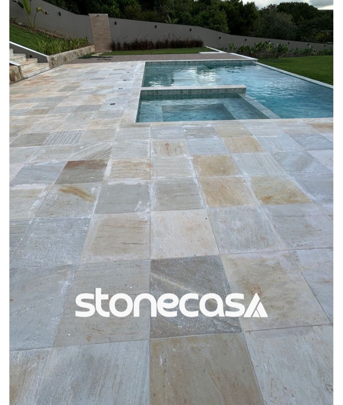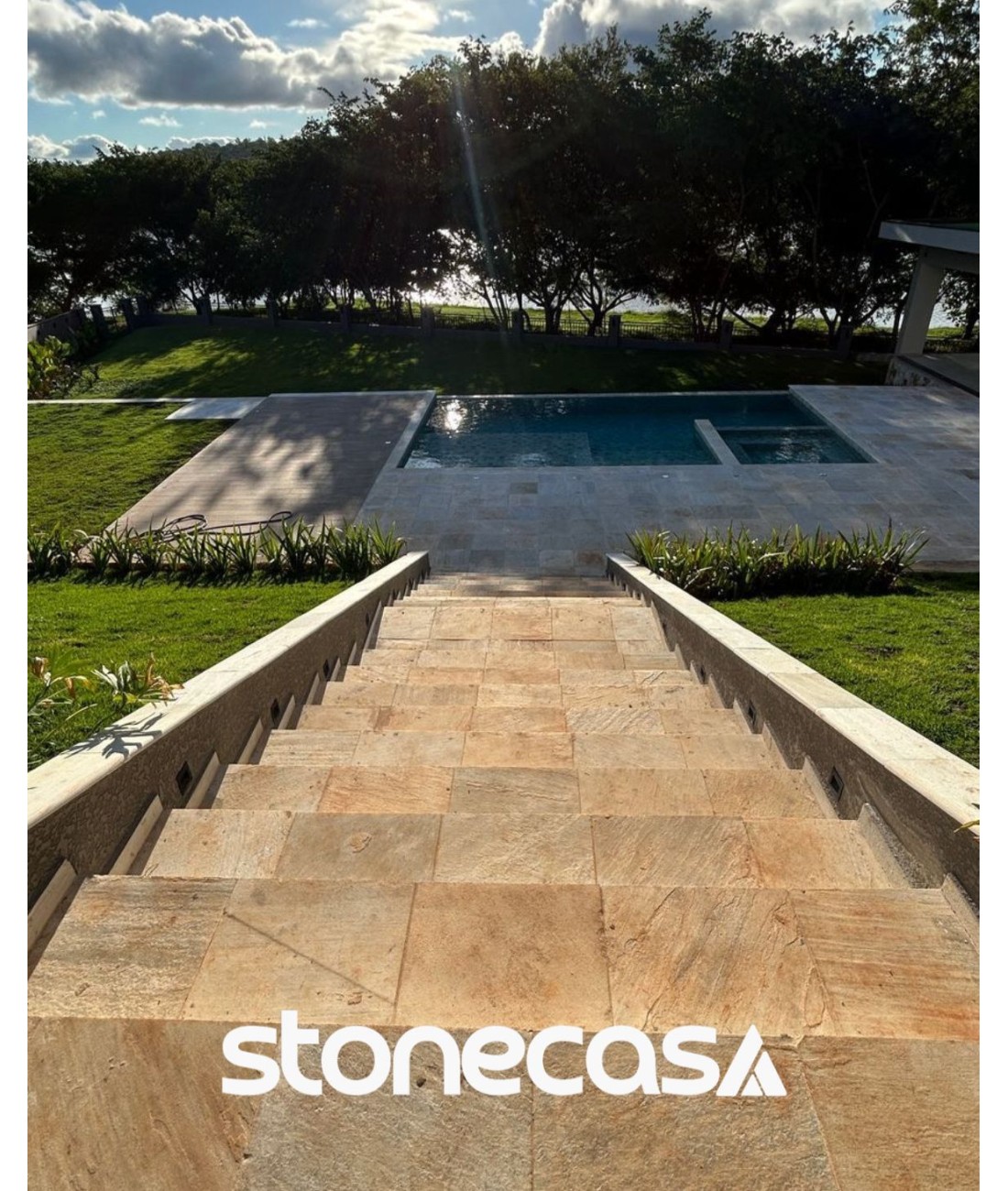 Bordas de Piscina com Acabamento Boleado: Oferecemos bordas de piscina em Pedra São Tomé com acabamento boleado, proporcionando um toque elegante e seguro ao entorno da piscina. Disponíveis em tamanhos como 15x30 cm e 18x37 cm, com espessuras de 2 cm a 3 cm, essas bordas são calibradas para garantir uniformidade e fácil instalação.