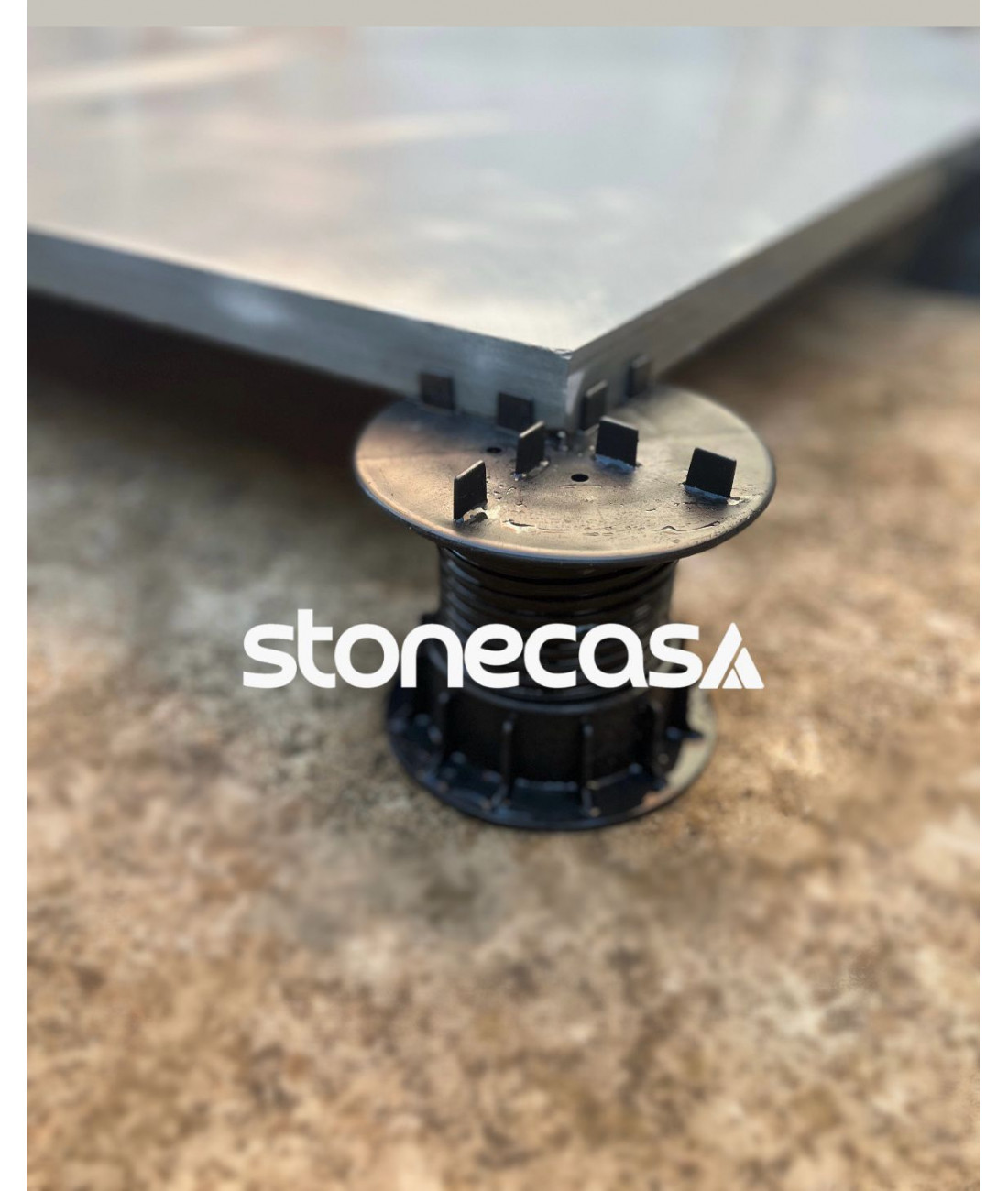 3. Instalação Simplificada: O sistema de instalação utiliza pedestais ajustáveis, eliminando a necessidade de colagem ou fixação das placas. A junta seca de 2 mm permite uma fácil drenagem de água em ambientes externos, além de promover a estabilidade e o alinhamento das placas.
