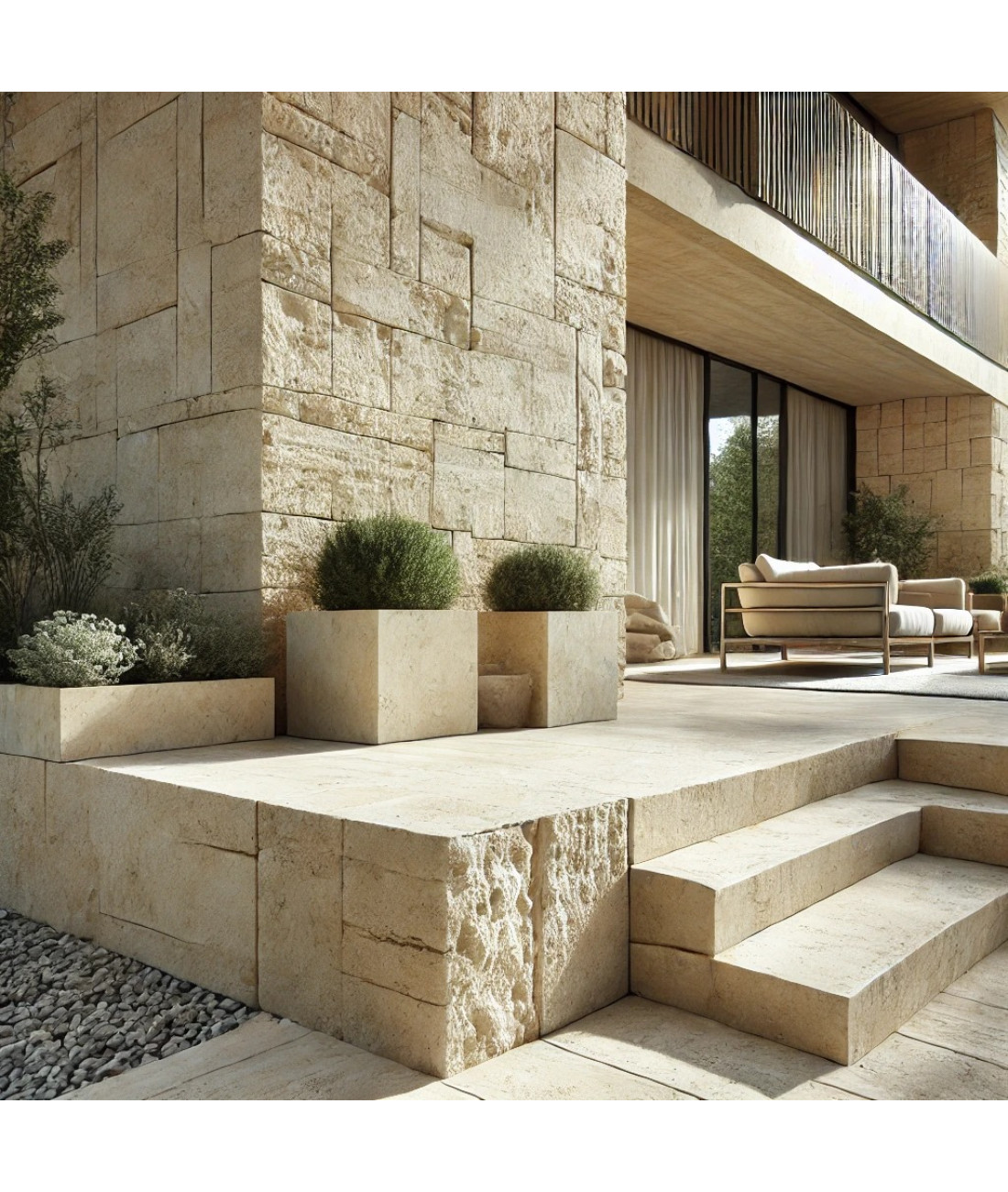 Travertino Romano: O travertino romano é uma pedra atemporal, amplamente usada em projetos de arquitetura devido à sua coloração neutra e acabamento elegante. É perfeito para revestimentos internos e externos, proporcionando um visual refinado e duradouro.